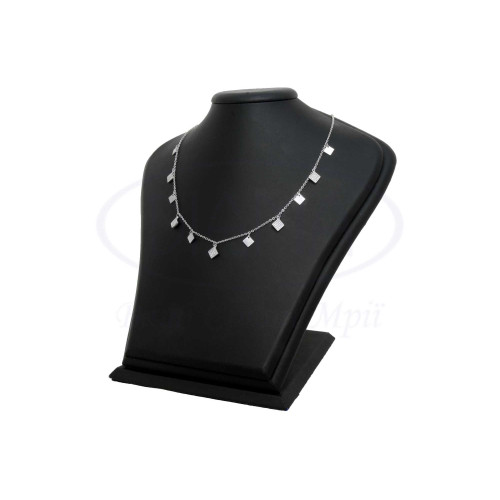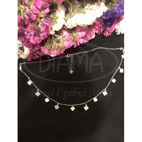 Кольє срібне прикрашене квадратика з білим цирконом. Срібло 925 проби, покрите родієм.