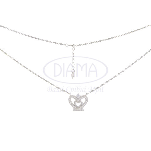 Кольє срібне в формі серця в серці, оздоблене цирконом. Срібло 925 проби, покрите родієм.