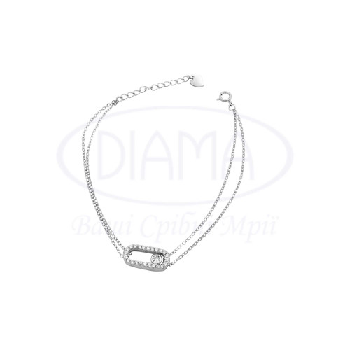 Срібний браслет з білим цирконом. Срібло 925 проби, покрите родієм. Розмір головного елементу 16*7,5 мм.