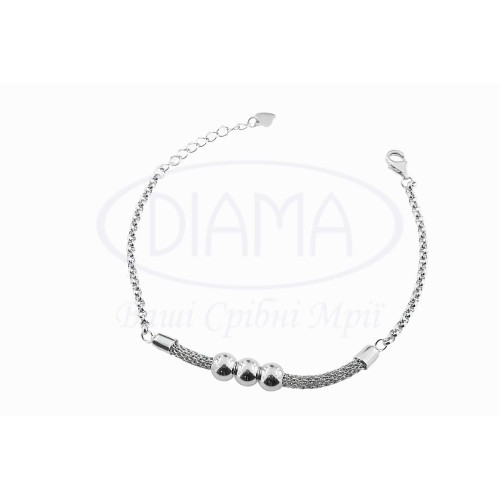 Браслет срібний з кульками. Срібло 925 проби, покрите родієм. Товщина браслета 3 мм, кульки 3 шт. по 6 мм.