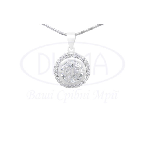 Підвіска срібна з білим цирконом та бантом. Срібло 925 проби, покрите родієм. Розмір 14 мм.