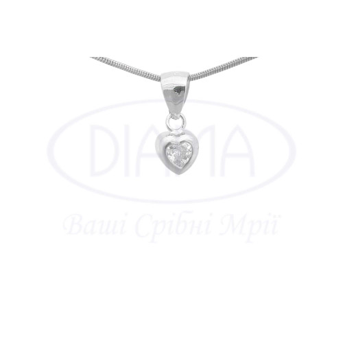 Підвіска срібна з білим цирконом в формі серця. Срібло 925 проби, покрите родієм. Розмір 7,5 мм.