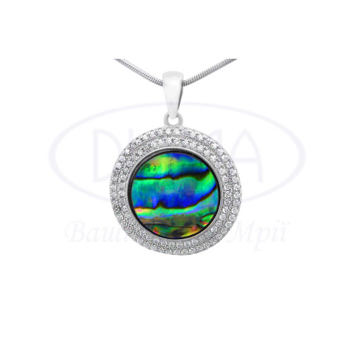 Підвіска срібна з кольоровим перламутром та білим цирконом. Срібло 925 проби, покрите родієм. Розмір 22 мм.