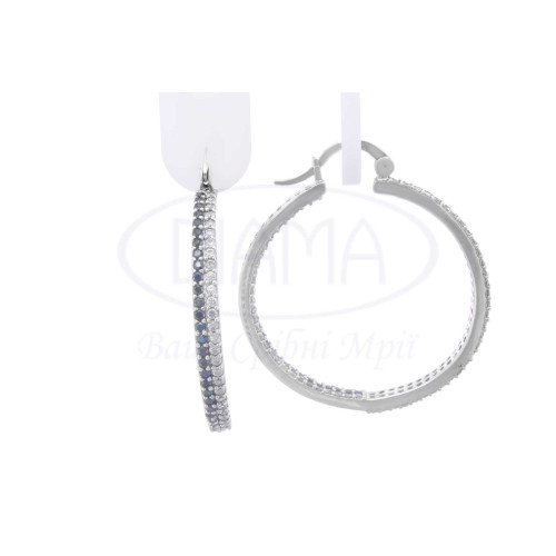 Срібні сережки кільця з білим та чорним цирконом. Срібло 925 проби, покрите родієм.