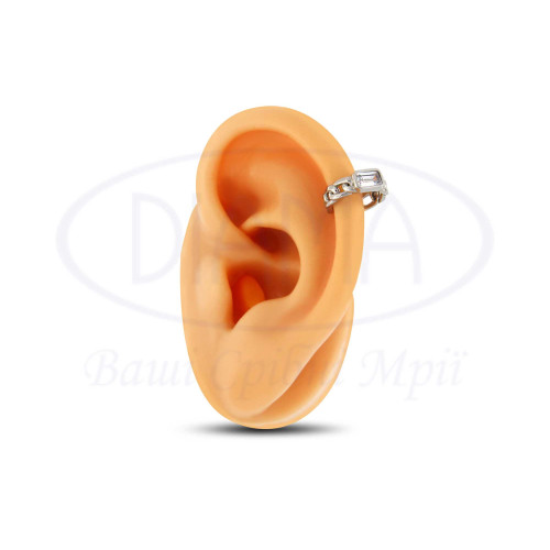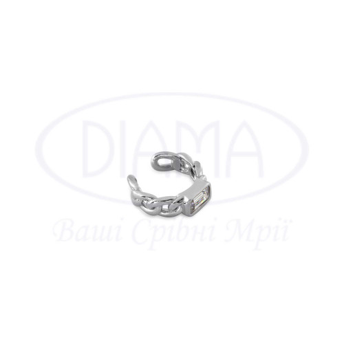 Сережка срібна Каффа з білим цирконом у вигляді плетіння. Срібло 925 проби, покрите родієм. Діаметр каффи 12 мм. Розмір камня 4х6 мм.