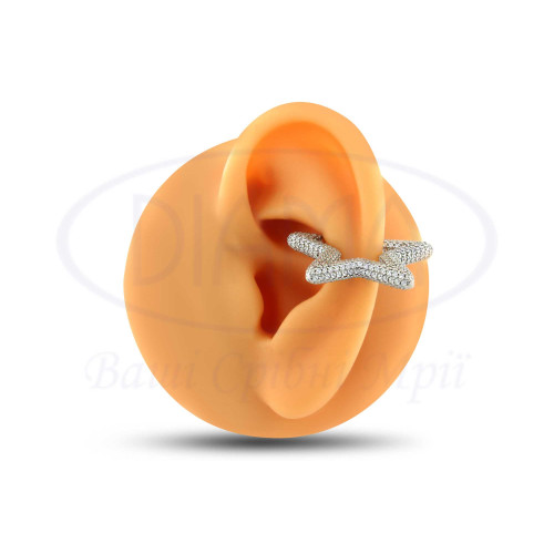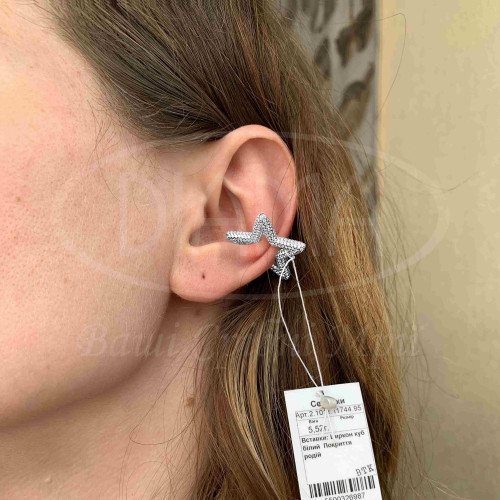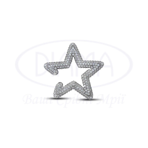 Срібна сережка-каффа в формі Зірки з білим цирконом. Срібло 925 проби, покрите родієм. Розмір 27*28 мм