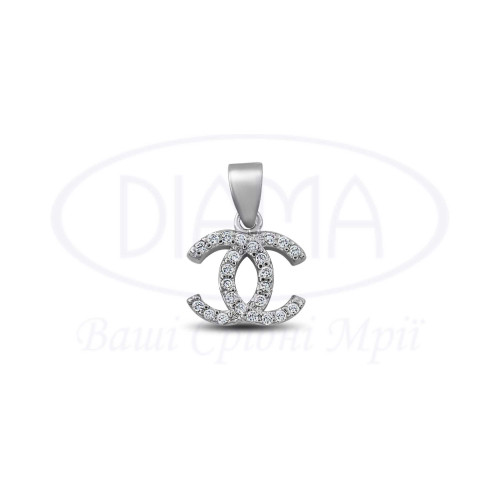Підвіска срібна з білим цирконом, розміром 12*9 мм. Срібло 925 проби, покрите родієм.