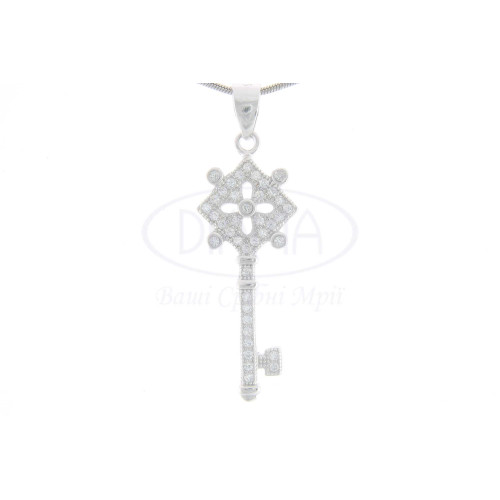 Підвіска срібна у формі ключа з білим цирконом. Срібло 925 проби, покрите родієм.
