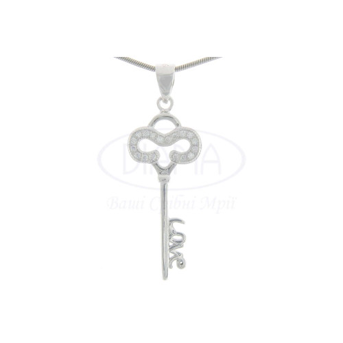 Підвіска срібна у формі ключа з надписом "Love". Вставка- білий циркон. Срібло 925 проби, покрите родієм.