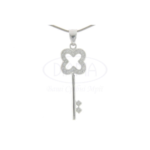 Підвіска срібна ключик прикрашена білим цирконом. Срібло 925 проби, покрите родієм.
