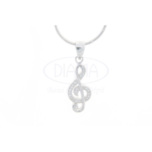 Підвіска срібна у формі ноти з білим цирконом. Срібло 925 проби, покрите родієм.