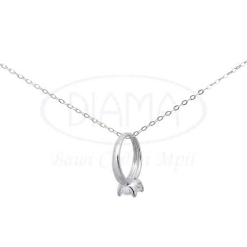 Срібне кольє з прикрасою в формі каблучки з білим цирконом. Срібло 925 проби, покрите родієм.