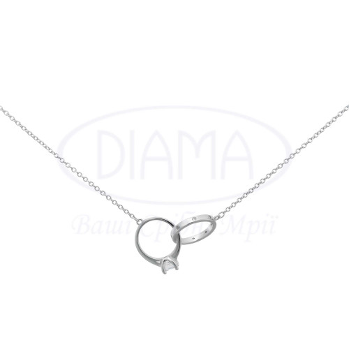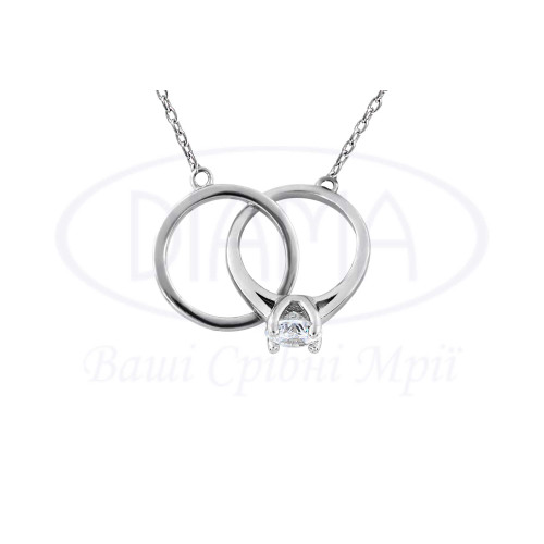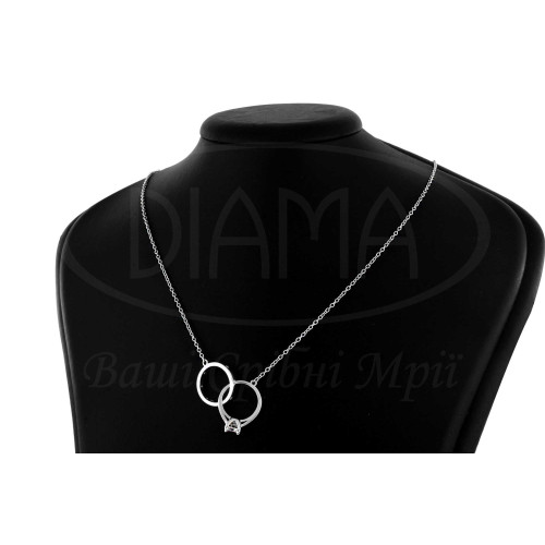 Срібне кольє з прикрасою в формі каблучки з білим цирконом. Срібло 925 проби, покрите родієм.