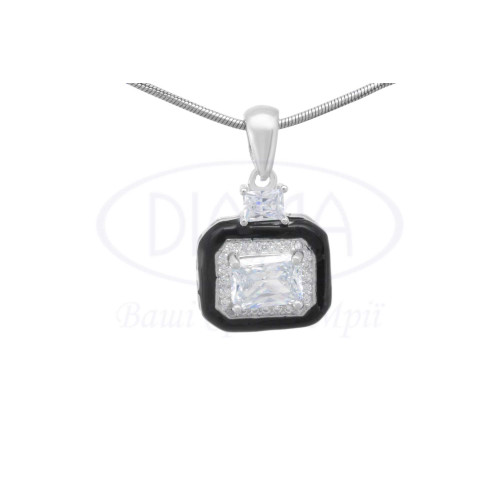 Срібна підвіска з білим цирконом та чорною емаллю. Срібло 925 проби, покрите родієм. В наборі присутні каблучка, сережки та підвіска.