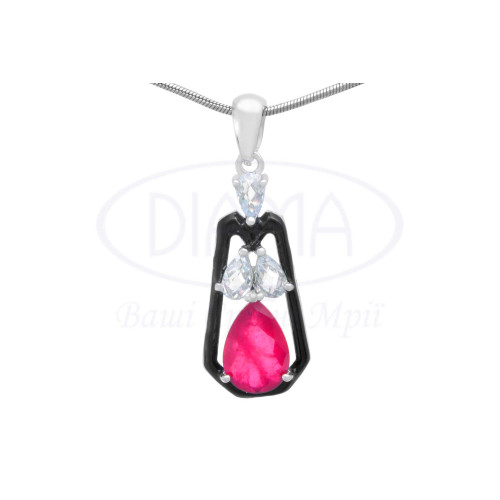 Срібна підвіска з білим та червоним цирконом та чорною емаллю. Срібло 925 проби, покрите родієм. В наборі присутні каблучка, сережки та підвіска.