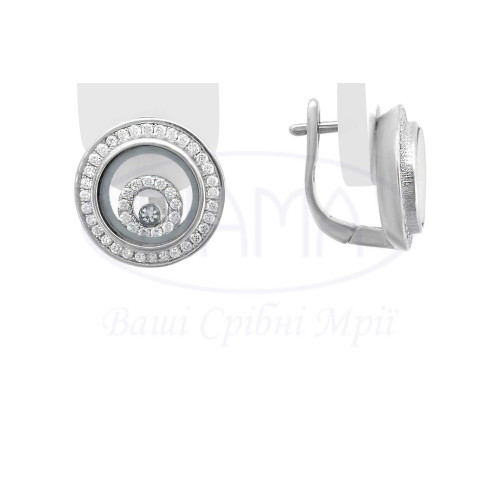 Срібні сережки з колом та білим цирконом під склом. Срібло 925 проби, покрите родієм. В наборі є каблучка, сережки та кольє.