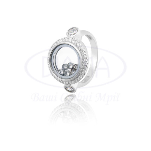 Срібна каблучка з білим цирконом під склом. Срібло 925 проби, покрите родієм. В наборі є каблучка та сережки.