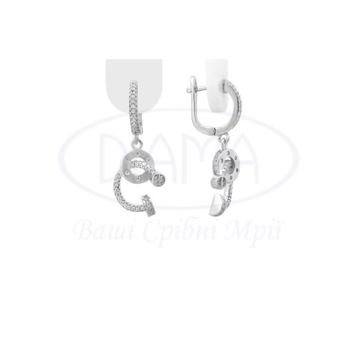 Срібні сережки з білим цирконом. Срібло 925 проби, покрите родієм. В наборі присутні каблучка, сережки та підвіс.