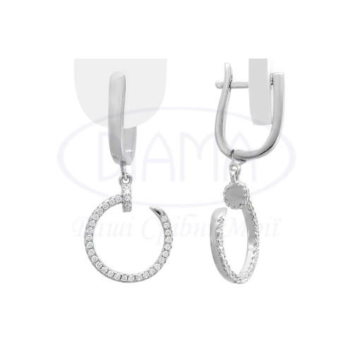 Срібні сережки у формі цвяха з білим цирконом. Срібло 925 проби, покрите родієм. В наборі присутні каблучка, сережки та підвіс.
