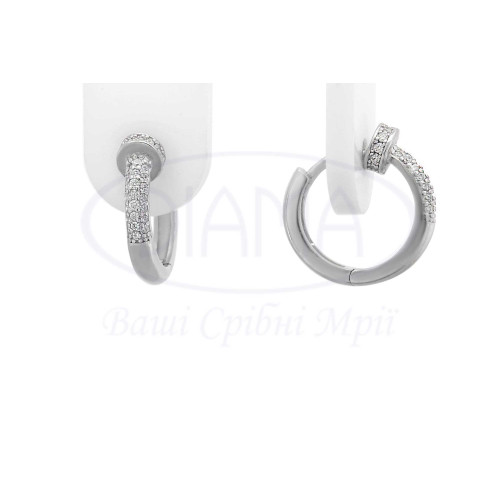 Срібні сережкиу формі цвяха з білим цирконом. Срібло 925 проби, покрите родієм. В наборі присутні каблучка, сережки та кольє.