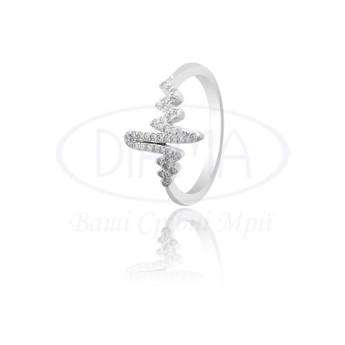 Срібна каблучка з білим цирконом у формі маленького серцебиття. Срібло 925 проби, покрите родієм. В наборі присутні каблучка, сережки, браслет та кольє.