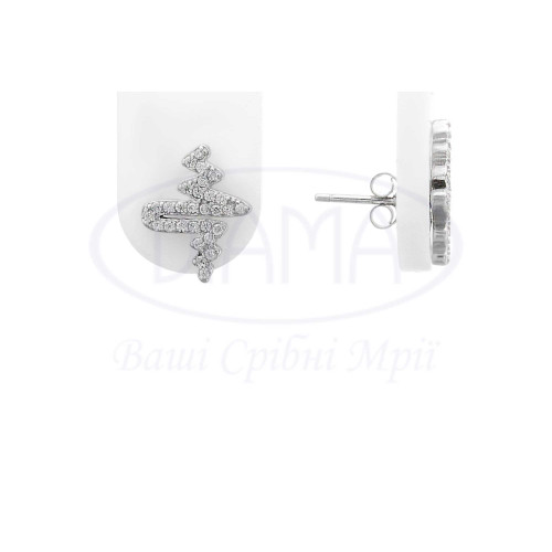 Срібні сережки з білим цирконом у формі маленького серцебиття. Срібло 925 проби, покрите родієм. В наборі присутні каблучка, сережки, браслет та кольє.