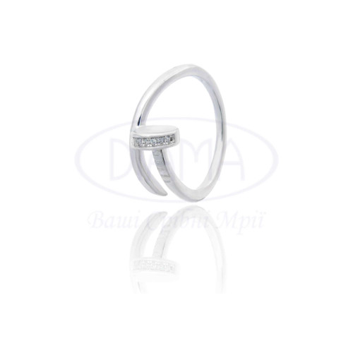 Срібна каблучка у формі цвяха з білим цирконом. Срібло 925 проби, покрите родієм. В комплекті також є браслет.