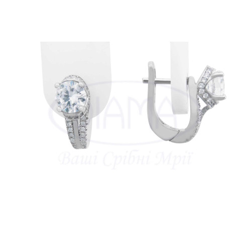 Сережки срібні з білим цирконом. Срібло 925 проби, покрите родієм. В комплекті каблучка та сережки. Розмір камня 6 мм