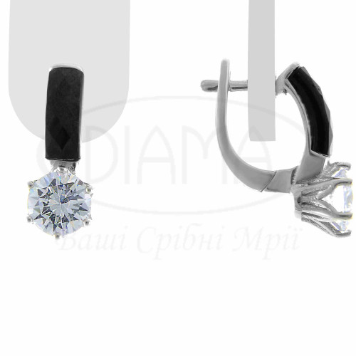 Сережки срібні з чорною керамікою та білим цирконом. Срібло 925 проби, покрите родієм. В наборі каблучка, сережки та підвіска.