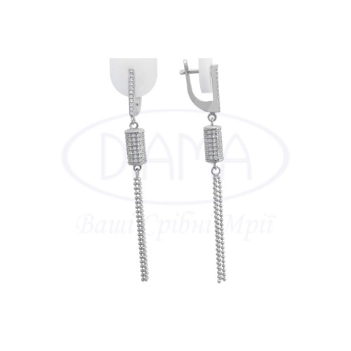 Срережки срібні з камінцями білого циркону. Срібло 925 проби, покрите родієм. В комплекті каблучка, сережки та підвіска.