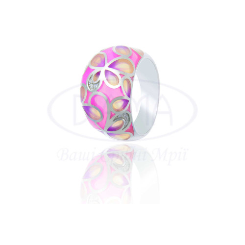 Срібна каблучка з кольоровою емаллю та білим цирконом. Срібло 925 проби, покрите родієм. В комплекті каблучка, сережки та підвіска.