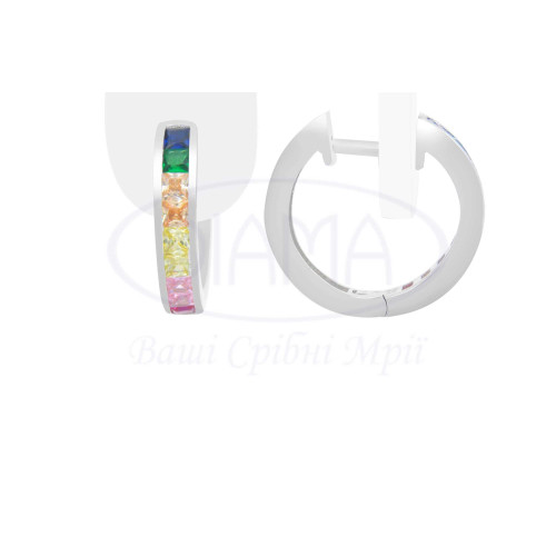 Сережки срібні з різнокольоровим цирконом. Срібло 925 проби, покрите родієм. В комплекті каблучка, підвіска та сережки.