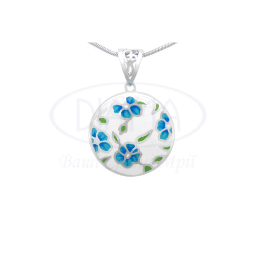 Срібна підвіска з кольоровою емаллю із зображенням квітів. Срібло 925 проби, покрите родієм. В комплекті каблучка, сережки та підвіска.