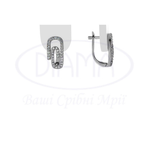 Сережки срібні з білим цирконом у формі скріпки. Срібло 925 проби, покрите родієм. Розмір сережки 8х15 мм. В наборі є каблучка, сережки та підвіска