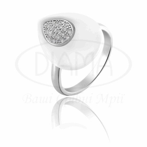 Каблучка срібна з білою керамікою та білим цирконом у формі краплі. Срібло 925 проби, покрите родієм. В наборі каблучка, сережки та підвіска.