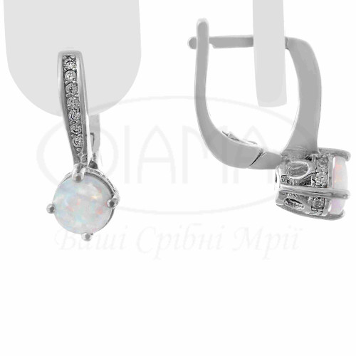 Сережки срібні з білим Опалом та білим цирконом. Срібло 925 проби, покрите родієм. Комплект складається з каблучки, підвіски та сережок.