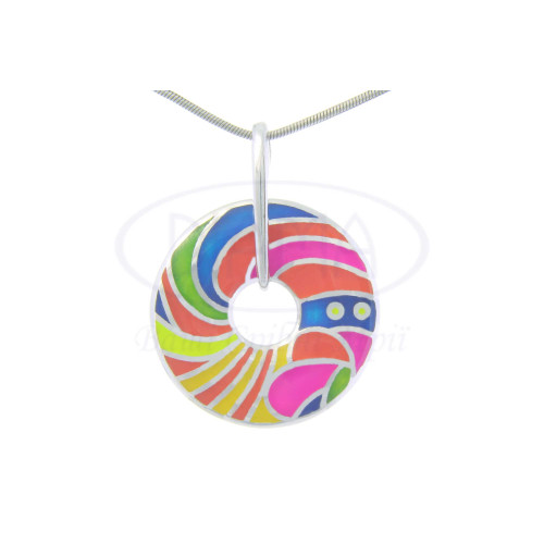 Срібна підвіска з кольоровою емаллю. Срібло 925 проби, покрите родієм. Комплект складається з каблучки, підвіски та сережок.