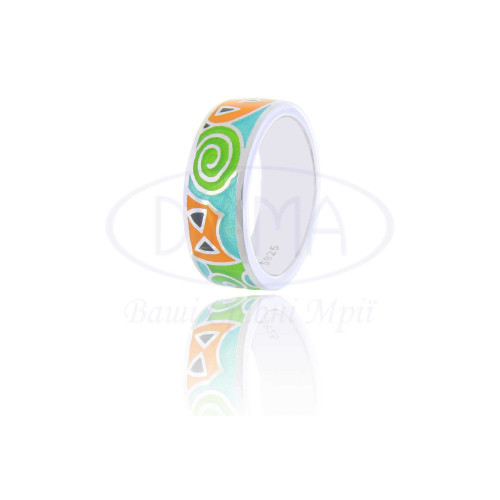Срібна каблучка з кольоровою емаллю. Срібло 925 проби, покрите родієм. Комплект складається з каблучки, підвіски та сережок.