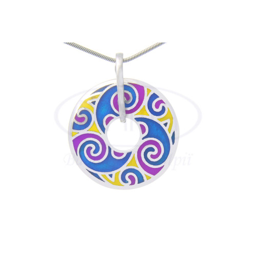 Срібна підвіска з кольоровою емаллю. Срібло 925 проби, покрите родієм. Комплект складається з каблучки, підвіски та сережок.