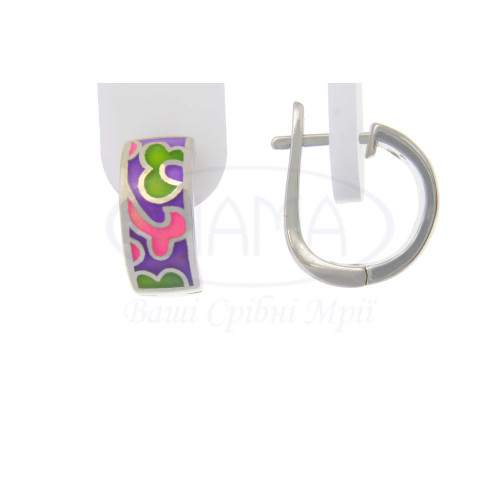 Срібні сережки з кольоровою емаллю. Срібло 925 проби, покрите родієм. В наборі каблучка, підвіска та сережки.