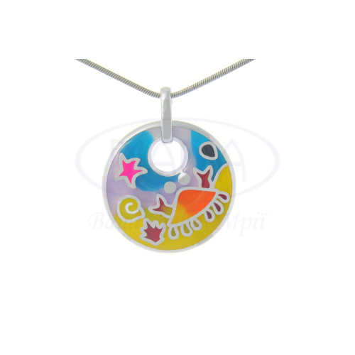 Срібна підвіска з кольоровою емаллю. Срібло 925 проби, покрите родієм. В наборі каблучка, підвіска та сережки.