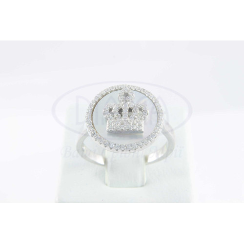 Срібна каблучка з білим перламутром та білим цирконом. Срібло 925 проби, покрите родієм. Комплект складається з каблучки та сережок.