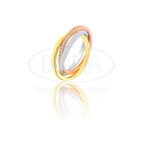 Каблучка срібна потрійна з білим цирконом. Срібло 925 проби, покрите родієм та позолотою. В комплекті каблучка, підвіска та сережки.