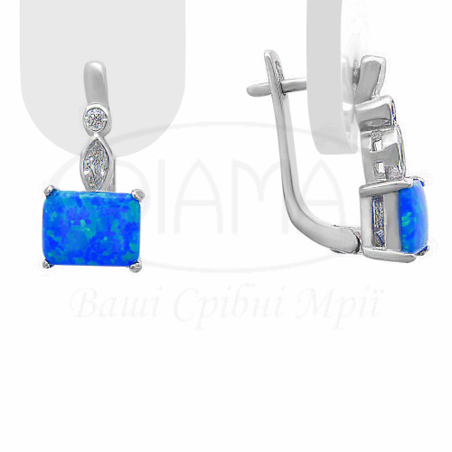 Сережки срібні з синім прямокутним опалом та цирконом. Срібло 925 проби, покрите родієм. В наборі присутні Каблучка, сережки та підвіска.