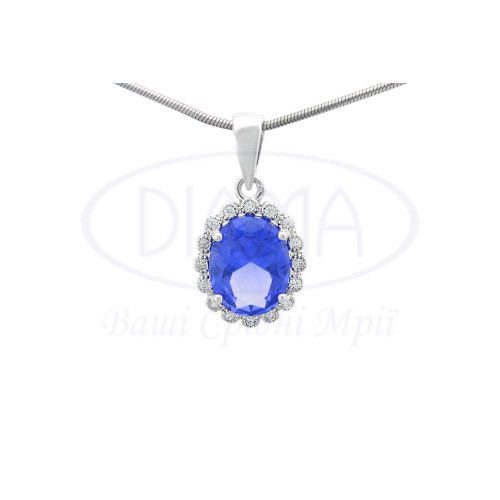 Підвіска срібна з Танзанітом та білим цирконом. Срібло 925 проби, покрите родієм. В наборі присутні каблучка, сережки та підвіска.
