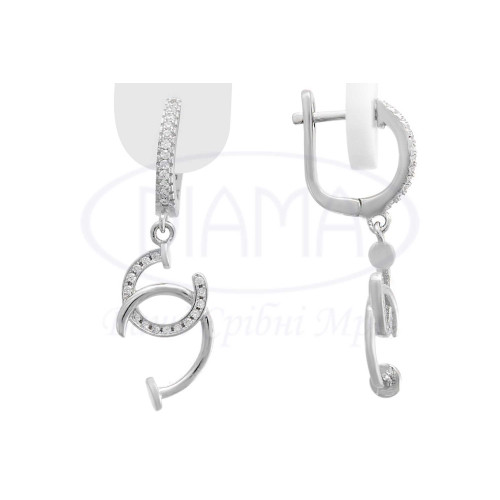 Срібні сережки у формі подвійного цвяха з білим цирконом. Срібло 925 проби, покрите родієм. В наборі присутні каблучка, сережки та підвіс.