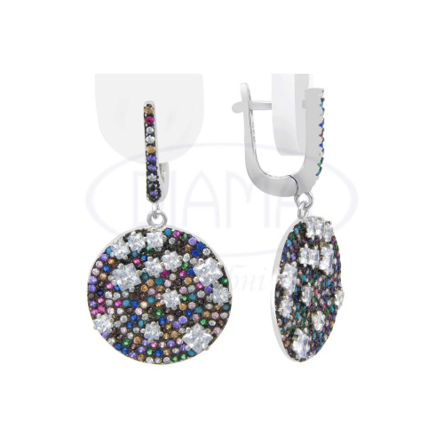 Сережки срібні у формі круга з кольоровим цирконом. Срібло 925 проби, покрите родієм. У наборі присутні каблучка , сережки та підвіска.