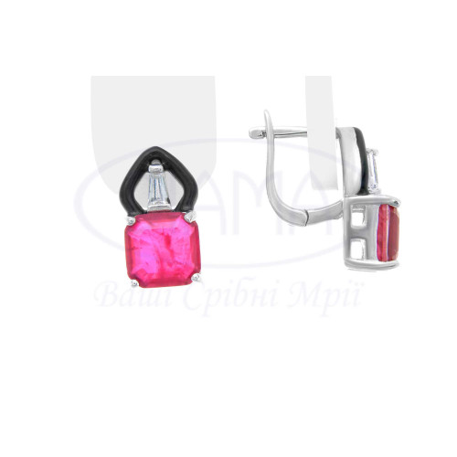 Сережки срібні з червоним цирконом та чорною емаллю. Срібло 925 проби, покрите родієм. В наборі присутні каблучка, сережки та підвіска.