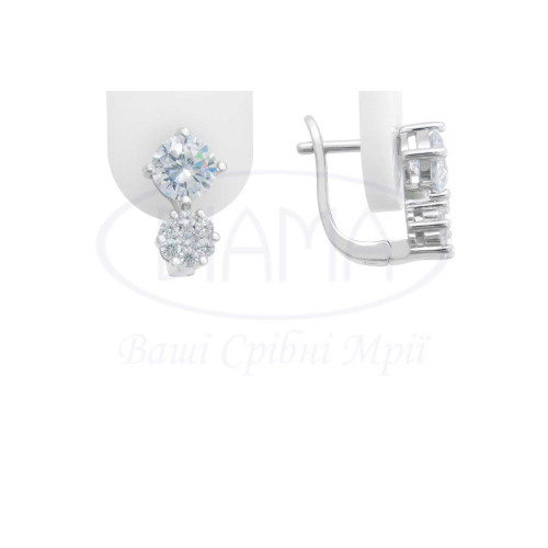 Сережки срібні з білим цирконом. Срібло 925 проби, покрите родієм. В комплекті каблучка, сережки та підвіска.