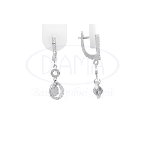 Сережки срібні з білим цирконом. Срібло 925 проби, покрите родієм. В комплекті каблучка, кольє та сережки. Діамерт головного елемента - 10 мм.